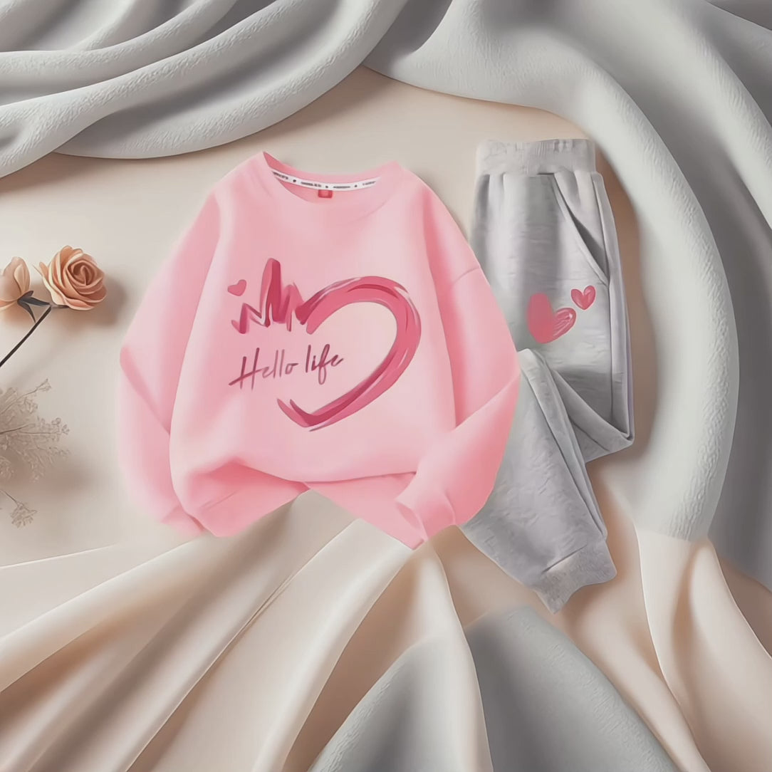 هذا الطقم الوردي والرمادي المرح ينبض بالسعادة مع كل ارتداء — مريح، أنيق، ومليء بالحياة!