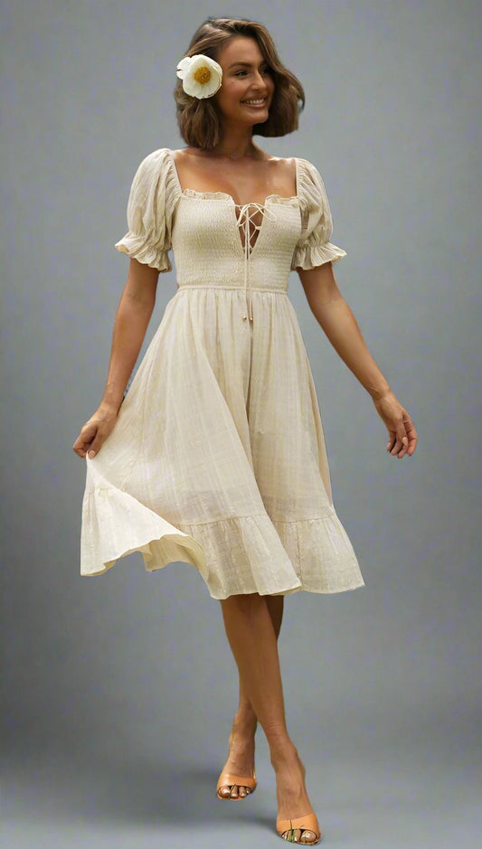 Puff Sleeve Cotton Midi DressRegular price Dhs. 100.00 AEDRegular priceUnit price / perDhs. 29.00 AEDSale price Dhs. 100.00 AED -