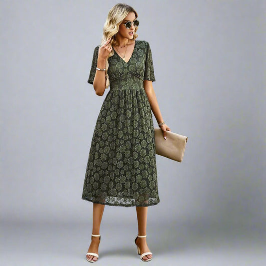 V-Neck Short Sleeve Lace Midi DressRegular price Dhs. 135.00 AEDRegular priceUnit price / perSale price Dhs. 135.00 AED -