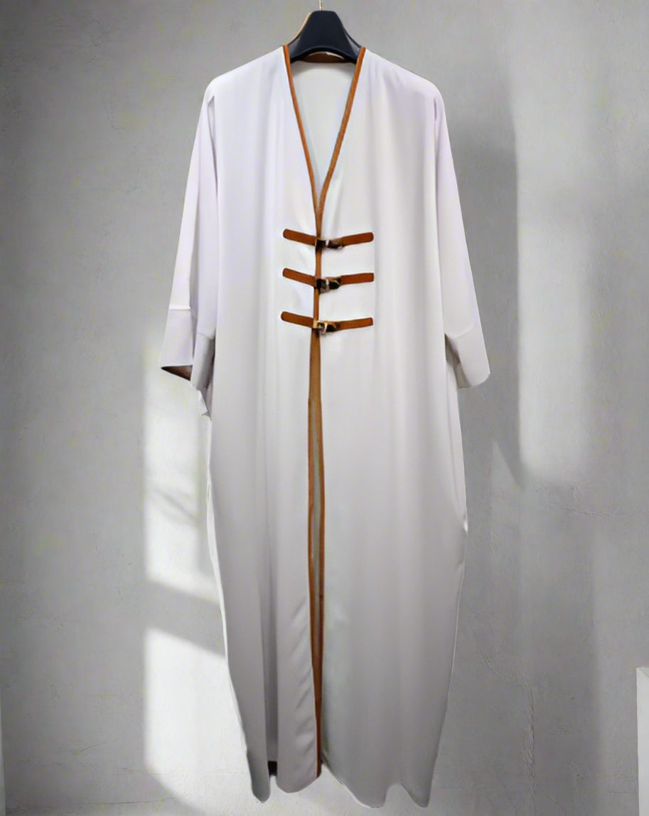 Grace meets simplicity in the timeless elegance of a white Abaya, a true symbol of purity and style