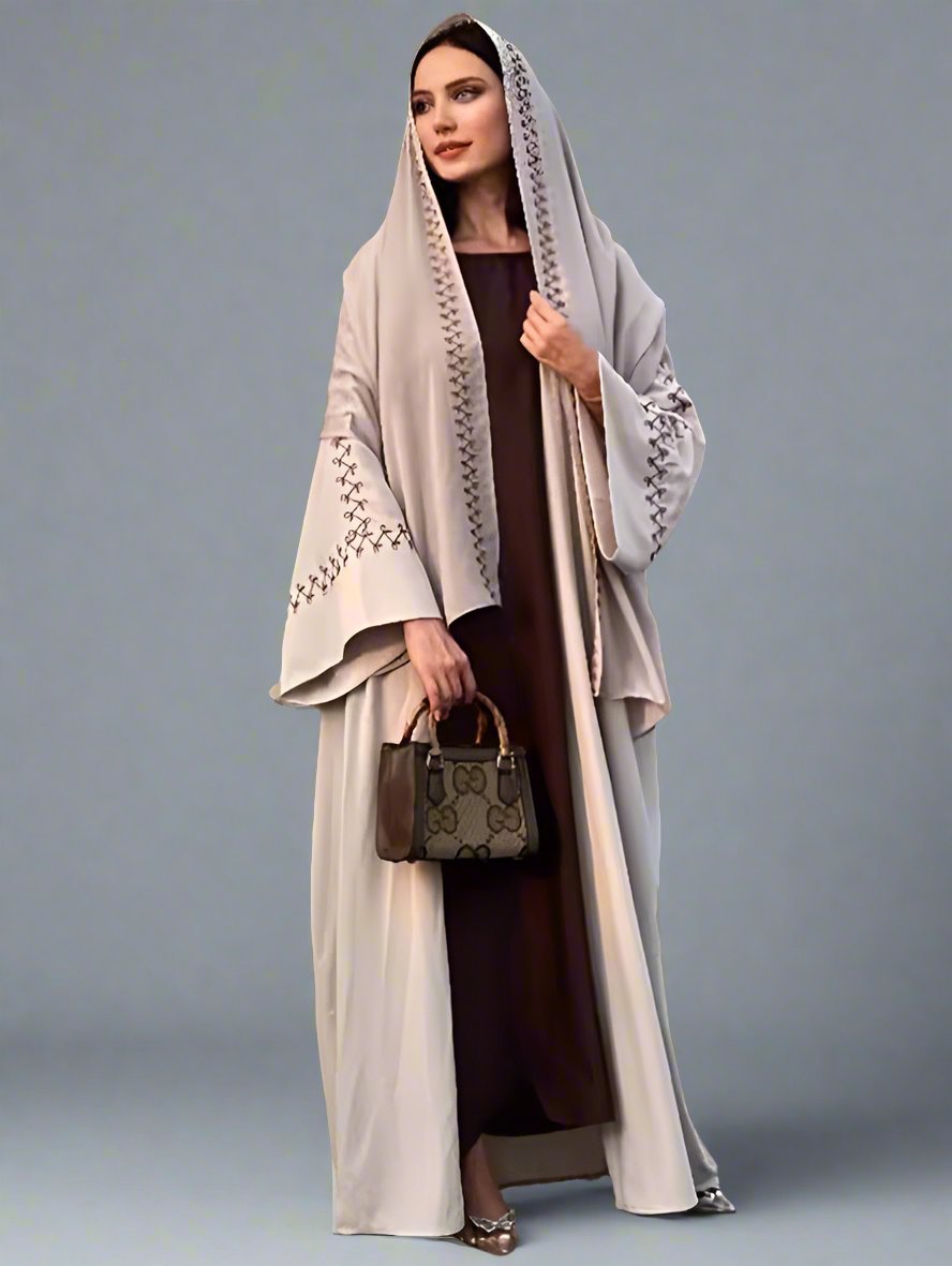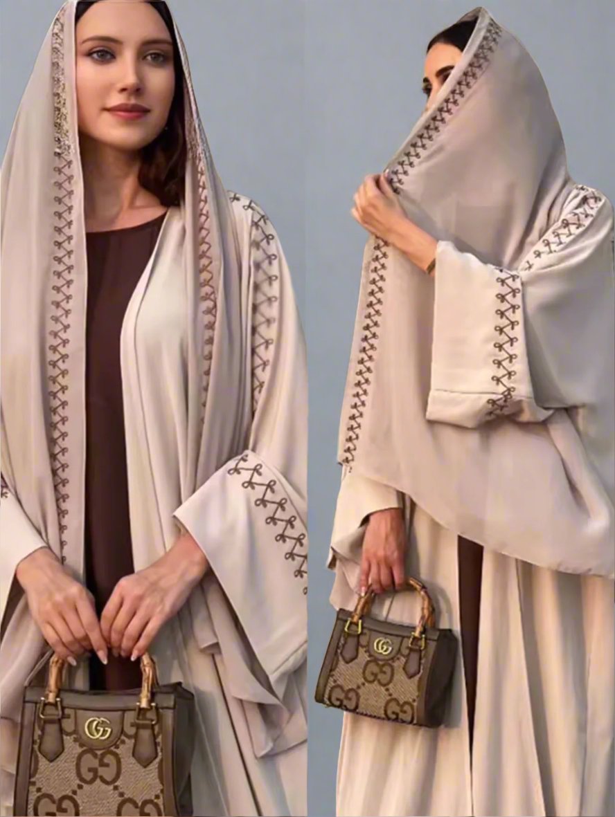 This abaya is a timeless symbol of elegance and modesty, embodying grace with its flowing silhouette and intricate designs.