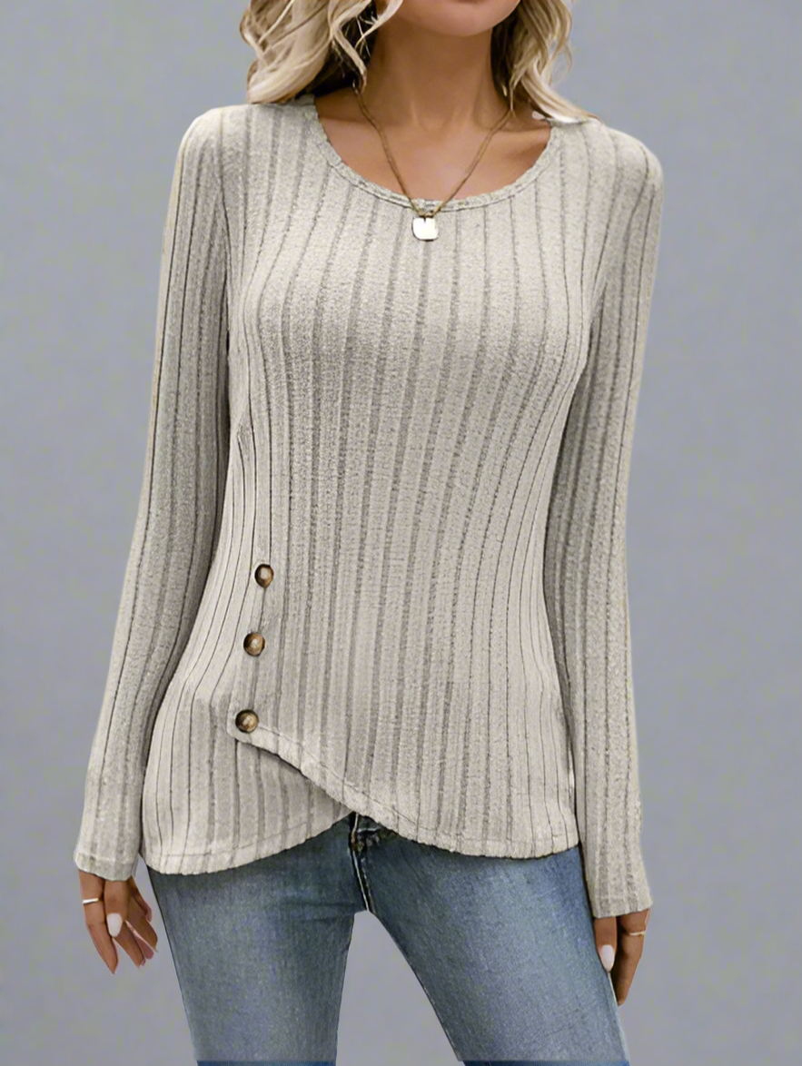 Asymmetric Ribbed Knit Button Sweater – Cozy Winter/Autumn Pullover